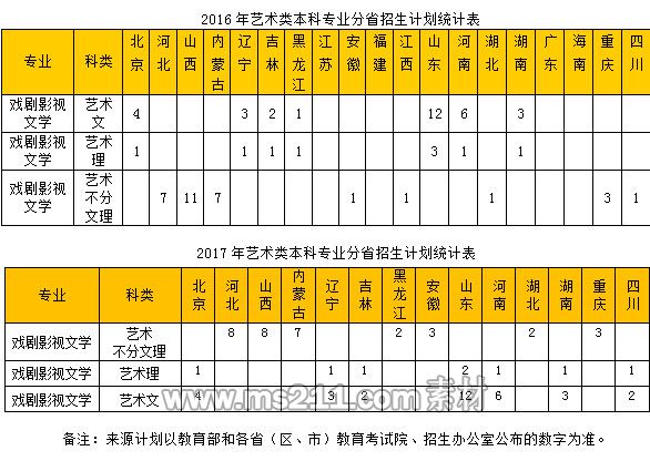 二、近兩年藝術(shù)類專業(yè)分省招生計(jì)劃統(tǒng)計(jì)表
