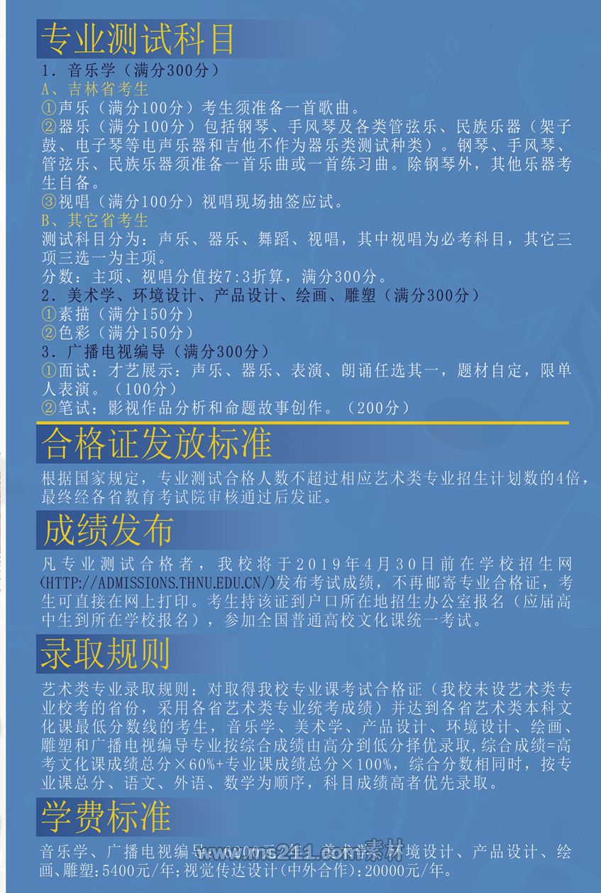 吉林省 音樂類:視唱、聲樂、器樂 編導(dǎo)類:面試(才藝展示) 筆試(影評、命題創(chuàng)作)