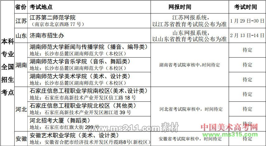 2.內(nèi)地各省報(bào)考時(shí)間、地點(diǎn)(我院藝術(shù)升網(wǎng)報(bào)系統(tǒng))