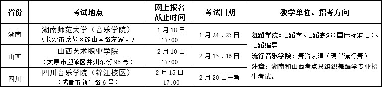 3.舞蹈表演(國際標(biāo)準(zhǔn)舞、現(xiàn)代流行舞)、舞蹈編導(dǎo)、攝影、影視攝影與制作各招考方向只在四川音樂學(xué)院(錦江校區(qū))考點組織招生專業(yè)考試。