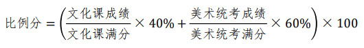 ?。?)投檔錄取時,按照比例分(四舍五入、保留小數(shù)點后兩位)進行分省排名,根據(jù)公布的分省計劃,從高分到低分順序擇優(yōu)錄取。比例分計算公式為:①書法學專業(yè)比例分滿分為100分。