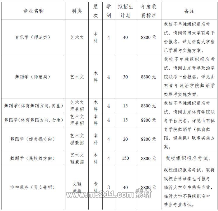2019年濱州學(xué)院藝術(shù)類和空中乘務(wù)專業(yè)招生簡章