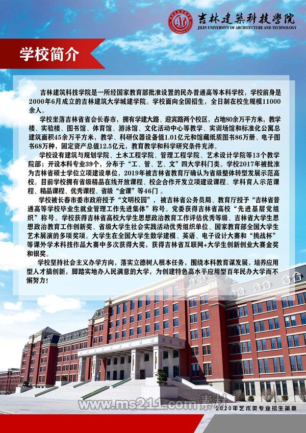 相關(guān)熱詞搜索:2020年吉林建筑科技學(xué)院藝術(shù)類專業(yè)招生簡(jiǎn)章