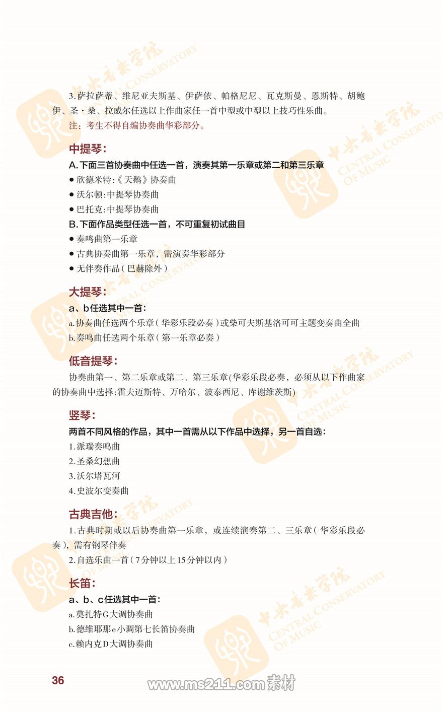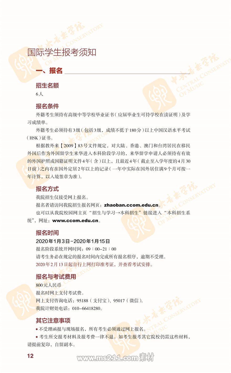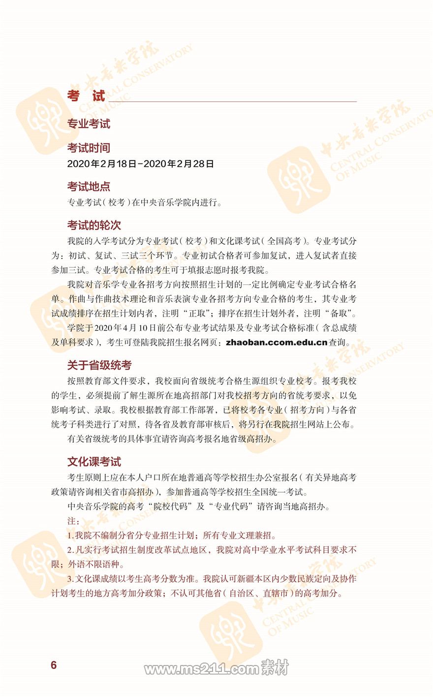 中央音樂學院2020年本科招生簡章