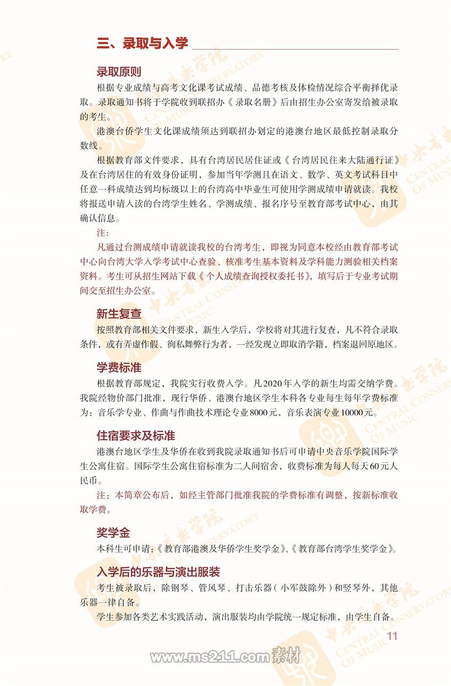 中央音樂學院2020年本科招生簡章(見下方)