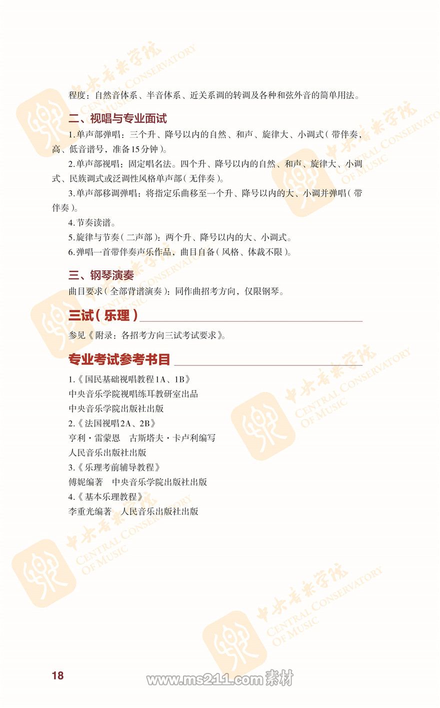 音樂學招考方向音樂聽辨內(nèi)容下載http://www.ccom.edu.cn/jxyx/yyxx/zskszl/201512/t20151207_38948.html
