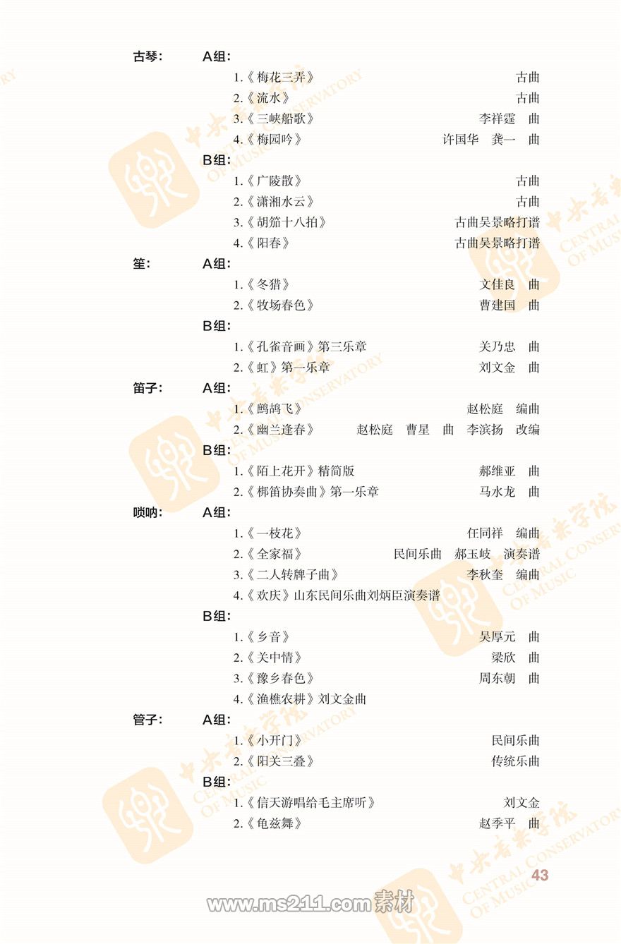 民樂系復試曲目曲譜鏈接:https://pan.baidu.com/s/1tfu3rI6ChioMSfZa6R2bdA