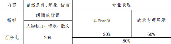 注:詳見《廣州體育學(xué)院2020年表演專業(yè)(武術(shù)表演方向)考試方法及評(píng)分標(biāo)準(zhǔn)》