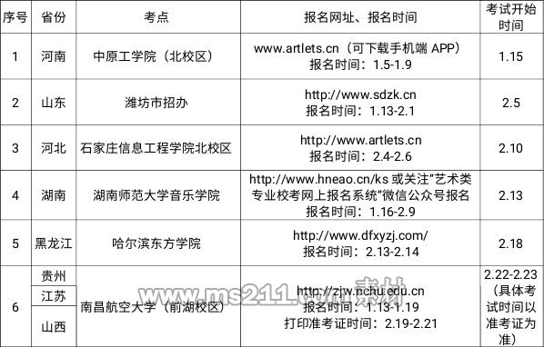 根據(jù)教育部2020年普通高等學(xué)校部分特殊類(lèi)型招生基本要求相關(guān)規(guī)定,我校今年在9個(gè)省招收音樂(lè)學(xué)專(zhuān)業(yè)考生,其中河南、湖南、山東、河北、黑龍江五個(gè)省設(shè)立了音樂(lè)學(xué)專(zhuān)業(yè)??伎键c(diǎn),該五省考生在生源所在地考點(diǎn)參加我校音樂(lè)學(xué)專(zhuān)業(yè)???,原則上不得異地報(bào)考;在江西省(我校本部所在地)設(shè)立了綜合考點(diǎn),貴州、山西、江蘇三個(gè)省的考生需前往我校所在地考點(diǎn)參加???。考生考試時(shí)必須提供本人身份證或戶(hù)籍卡、準(zhǔn)考證等證件。