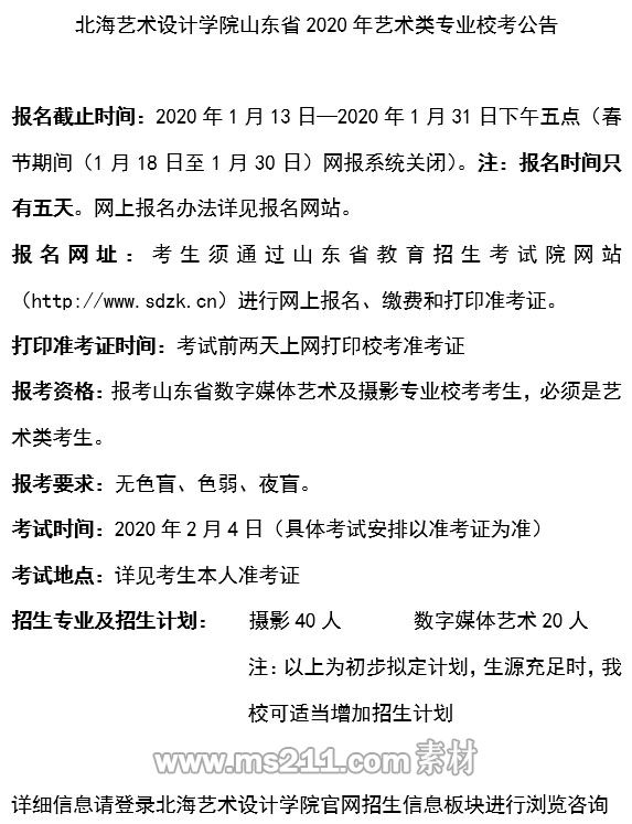 相關(guān)熱詞搜索:北海藝術(shù)設(shè)計(jì)學(xué)院2020年山東省藝術(shù)類專業(yè)校考公告