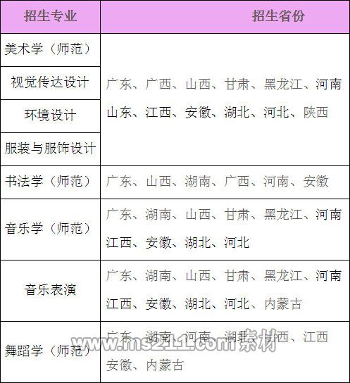 2.在廣東省招生的美術類、音樂類和舞蹈學等專業(yè)和在外省招生的藝術類專業(yè),專業(yè)成績使用相應省的統(tǒng)考成績,不再組織??肌?/p>