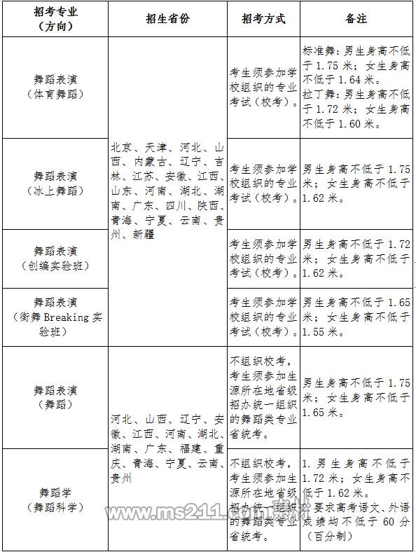 (二)采用省統(tǒng)考成績錄取的省份,按生源所在地省級招辦統(tǒng)一組織的舞蹈類統(tǒng)考成績從高到低擇優(yōu)錄取;