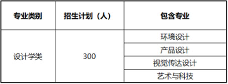 為給予學(xué)生更多的專(zhuān)業(yè)選擇機(jī)會(huì),我校藝術(shù)類(lèi)專(zhuān)業(yè)實(shí)行大類(lèi)(設(shè)計(jì)學(xué)類(lèi))招生。一年后按照學(xué)習(xí)成績(jī)和學(xué)生志愿進(jìn)行專(zhuān)業(yè)分流。具體招生計(jì)劃如下: