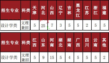2019年招生計(jì)劃:設(shè)計(jì)學(xué)類,按大類招生,分為視覺傳達(dá)設(shè)計(jì)、產(chǎn)品設(shè)計(jì)、數(shù)字媒體藝術(shù),入學(xué)后,學(xué)校根據(jù)考生專業(yè)報(bào)名和分?jǐn)?shù)情況選擇具體專業(yè)。具體招生計(jì)劃如下圖: