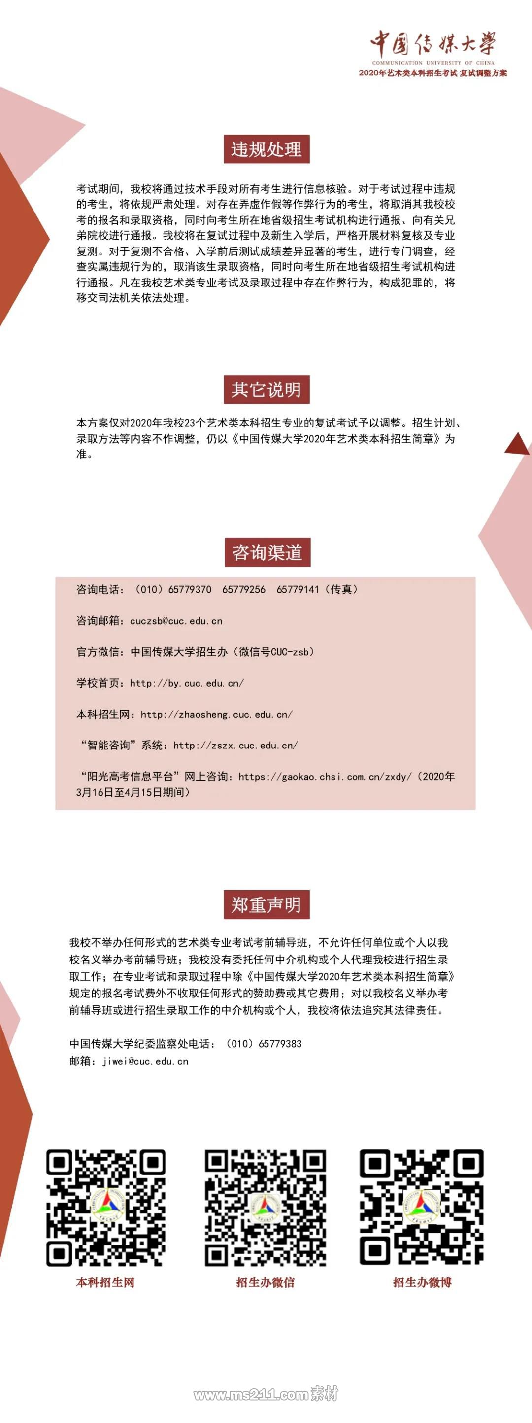 相關(guān)熱詞搜索:中國傳媒大學(xué)2020年藝術(shù)類專業(yè)復(fù)試方案調(diào)整的公告