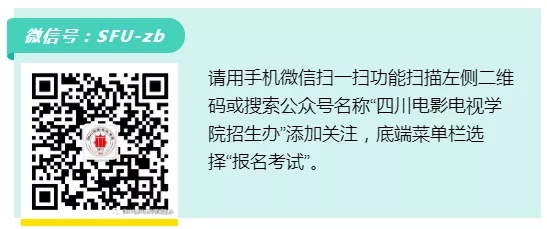 網(wǎng)報系統(tǒng):關注“四川電影電視學院招生辦”微信公眾號報名