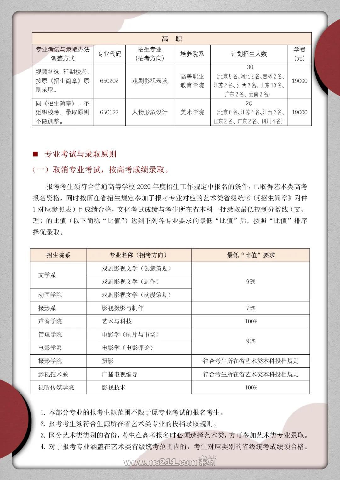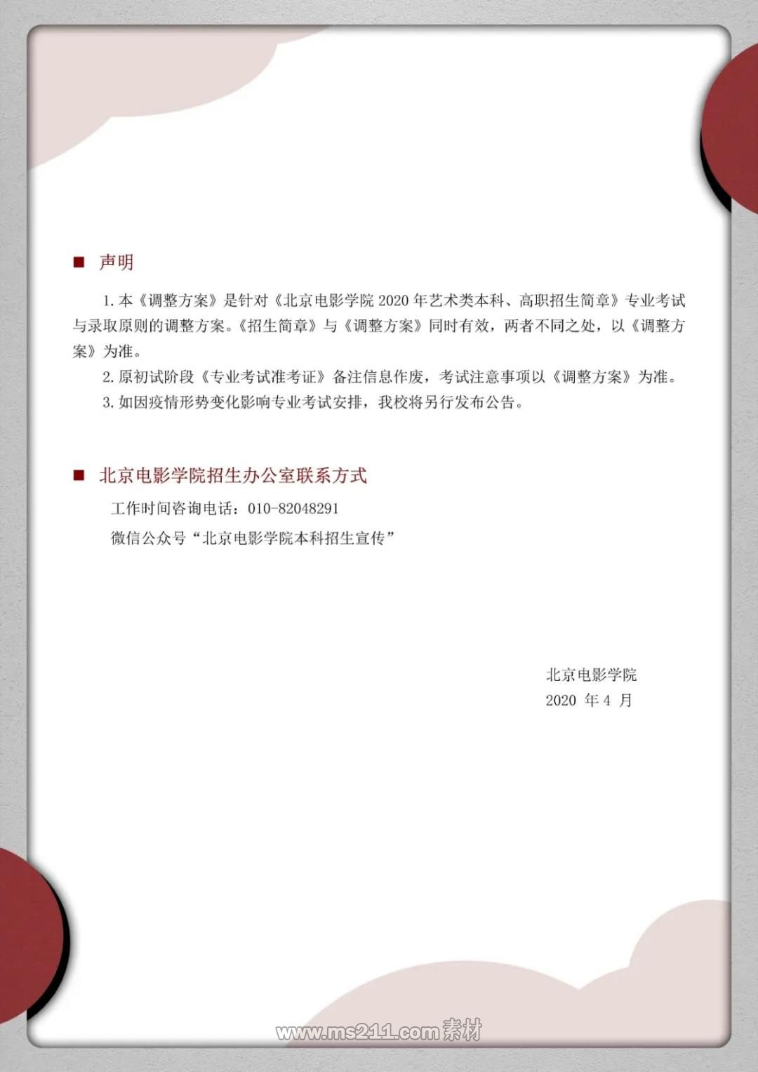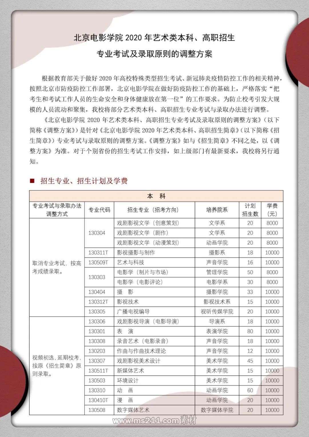 北京電影學(xué)院2020年藝術(shù)類本科、高職招生專業(yè)考試及錄取原則的調(diào)整方案