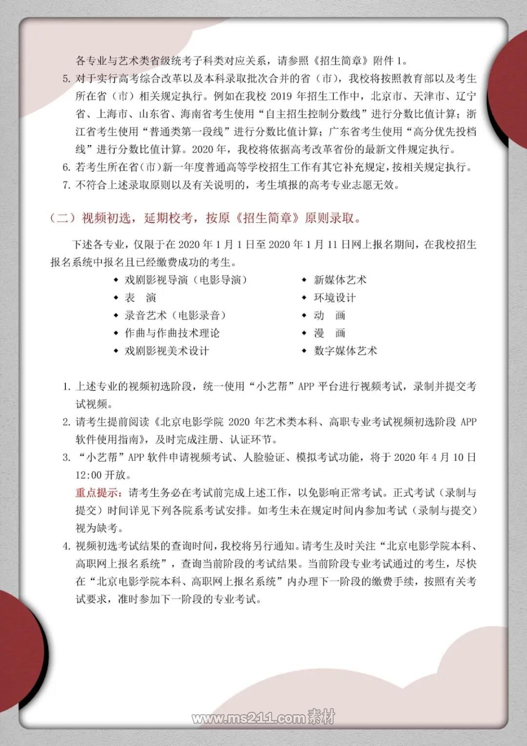 相關(guān)熱詞搜索:北京電影學(xué)院2020年藝術(shù)類本科、高職招生專業(yè)考試及錄取原則的調(diào)整方案