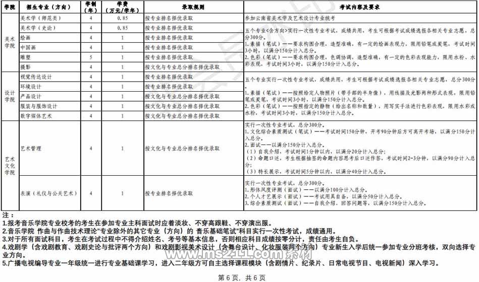 (二)音樂學(xué)(師范類)和美術(shù)學(xué)(師范類)兩個專業(yè)只面向云南省招生,報考上述兩個專業(yè)的考生參加云南省相應(yīng)專業(yè)的省級統(tǒng)考即可,錄取時直接使用統(tǒng)考成績。報考其余本科專業(yè)的考生必須參加我校在各招生省份考點組織的專業(yè)校考。