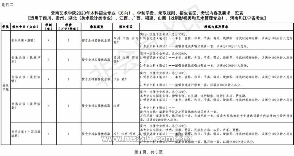 (二)云南藝術(shù)學(xué)院2020年本科招生專業(yè)(方向)、學(xué)制學(xué)費、錄取規(guī)則、招生省份、考試內(nèi)容及要求一覽表【適用于四川、貴州、湖北(美術(shù)設(shè)計類專業(yè))、江西、廣西、福建、山西(戲劇影視類和藝術(shù)管理專業(yè))、河南和遼寧省考生】