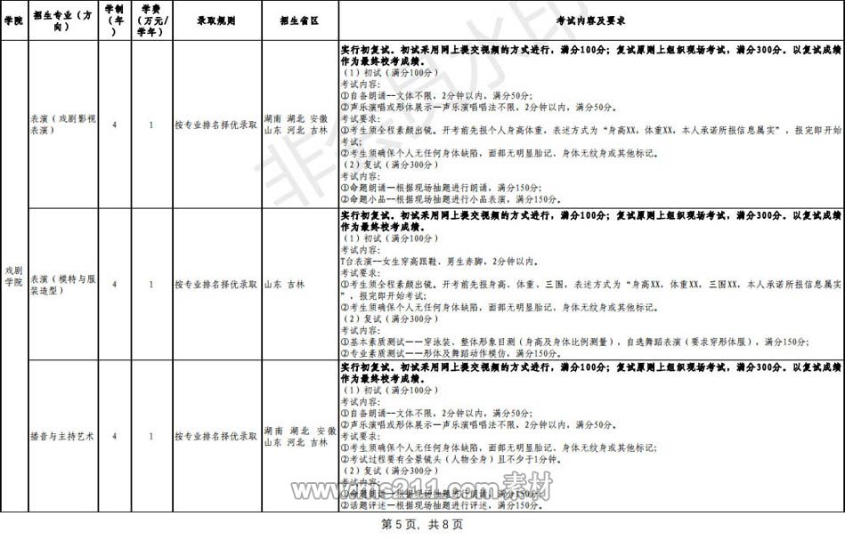(六)按本簡章組織??嫉氖》?、專業(yè)與之前已完成校考的省份、專業(yè)分開排名,分省錄取。
