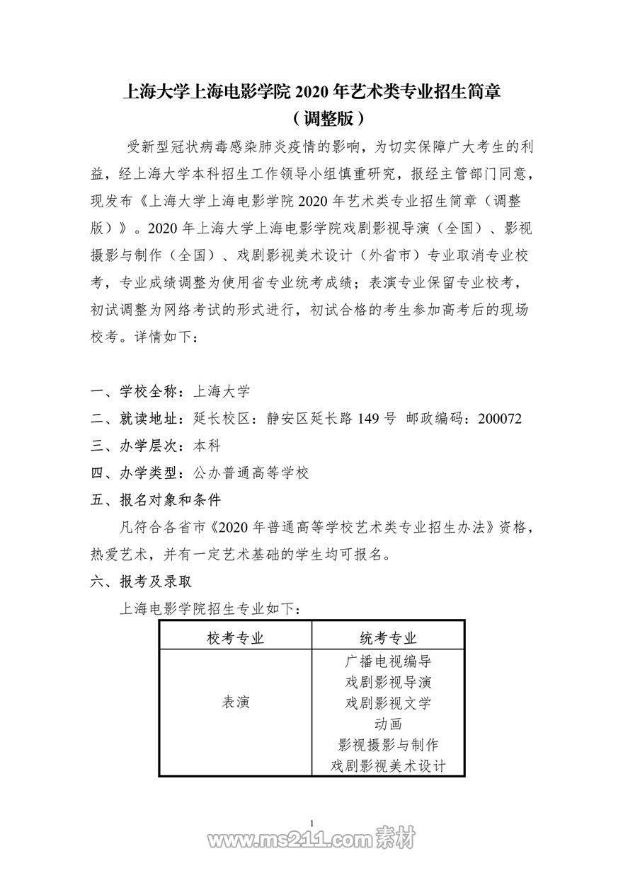 相關(guān)熱詞搜索:上海大學(xué)上海電影學(xué)院2020年藝術(shù)類校考招生簡章(調(diào)整版)