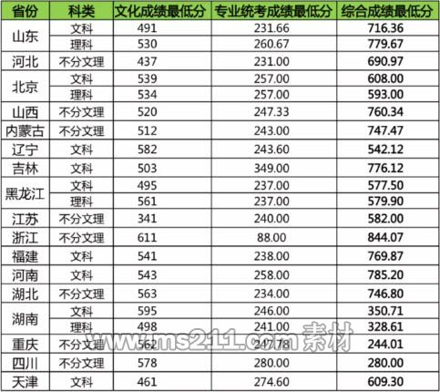 (2)對(duì)于順序志愿投檔的省份,按照投檔考生的專業(yè)統(tǒng)考成績和高考投檔成績的合成分錄取。