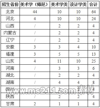 美術(shù)學(xué)院各專業(yè)的招生省、市、自治區(qū)(以下稱招生省份)及計(jì)劃人數(shù)如下:
