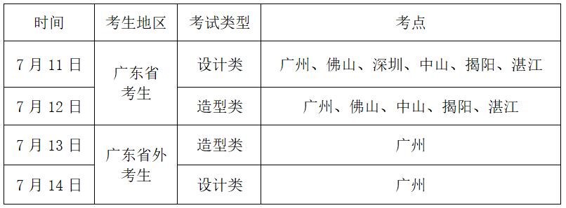 注意:根據(jù)考點(diǎn)實(shí)際情況,取消深圳考點(diǎn)“造型類”考試安排,預(yù)報(bào)名階段選擇深圳考點(diǎn)“造型類”考試的考生,統(tǒng)一安排到廣州考點(diǎn)進(jìn)行考試。