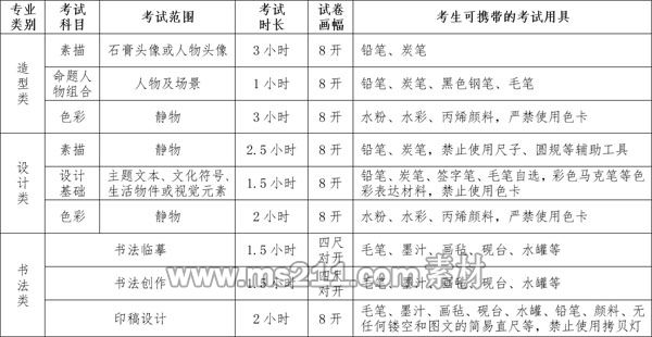 3.考試科目、范圍、時(shí)長(zhǎng)、畫(huà)幅和用具