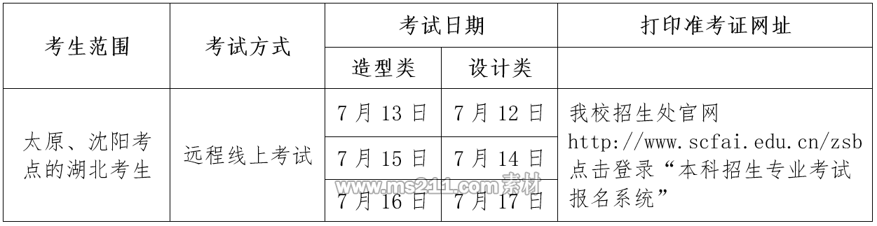 請考生于2020年6月29日10:00至2020年6月30日16:00在我校招生處官網(wǎng)http://www.scfai.edu.cn/zsb點擊登錄“本科招生專業(yè)考試報名系統(tǒng)”重新選擇確定參加考試的具體日期。如線上考場單日容量達到上限,考生將只能選擇有空余考位的日期。未按時進行選擇考試日期操作的考生,系統(tǒng)將隨機安排考試日期。