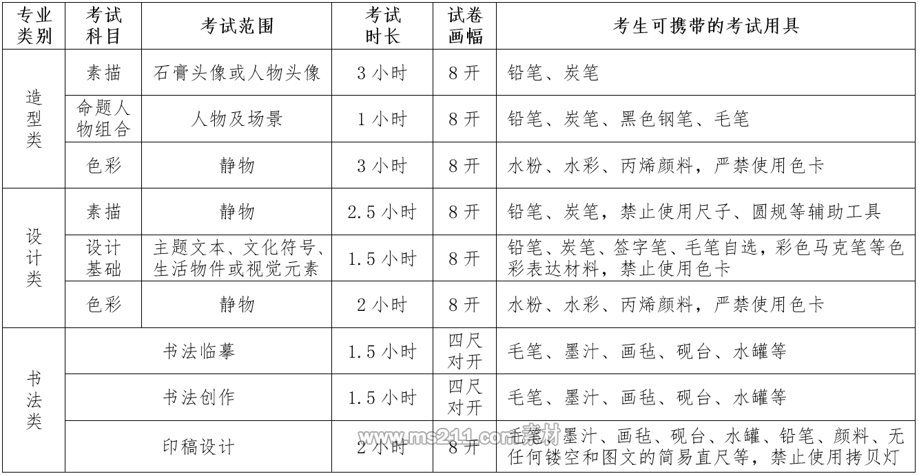 4.考試科目、范圍、時長、畫幅和用具