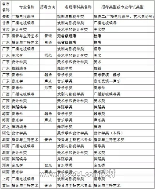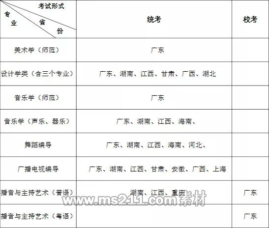 除播音與主持藝術(shù)(普語、粵語)在廣東省采取??夹问酵?廣東省無此專業(yè)類別統(tǒng)考),其他專業(yè)(含播音與主持藝術(shù)專業(yè)在廣東省外招生)的術(shù)科成績均承認招生相應(yīng)省份(自治區(qū)、直轄市)的藝術(shù)類術(shù)科統(tǒng)考成績。
