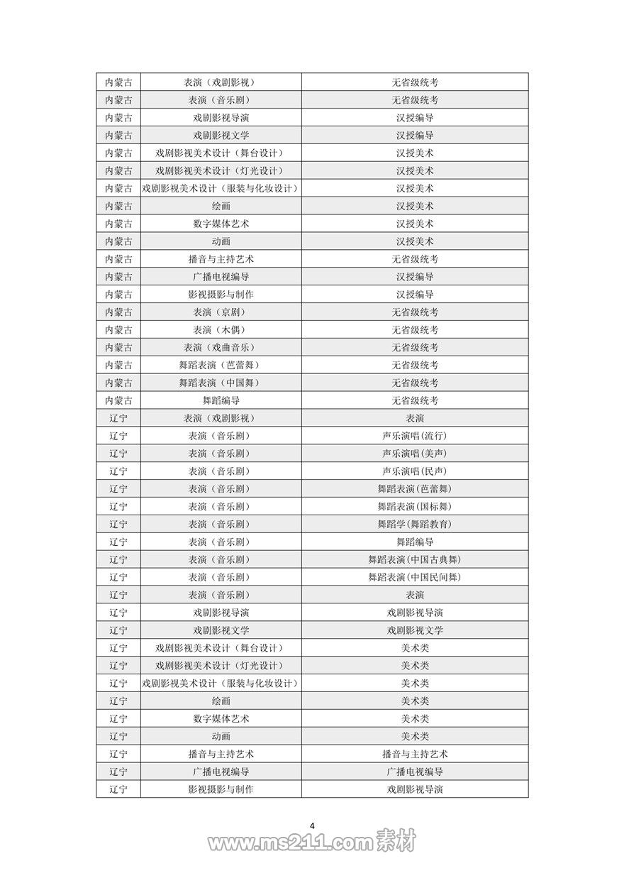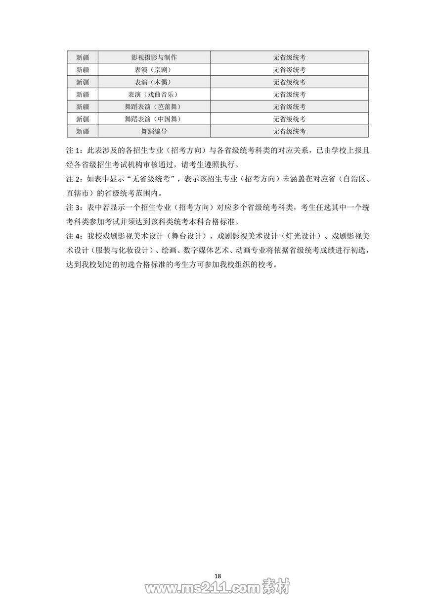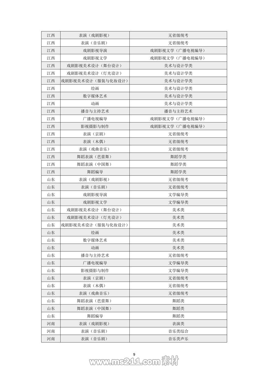擬招生專業(yè)與各省級(jí)統(tǒng)考對(duì)應(yīng)關(guān)系請(qǐng)查看附件《上海戲劇學(xué)院2021年本科招生專業(yè)(招考方向)與各省級(jí)統(tǒng)考子科類對(duì)應(yīng)表》,若一個(gè)招生專業(yè)(招考方向)對(duì)應(yīng)多個(gè)省級(jí)統(tǒng)考科類,則任選其中一個(gè)統(tǒng)考科類參加考試并須達(dá)到該科類統(tǒng)考本科合格標(biāo)準(zhǔn)。