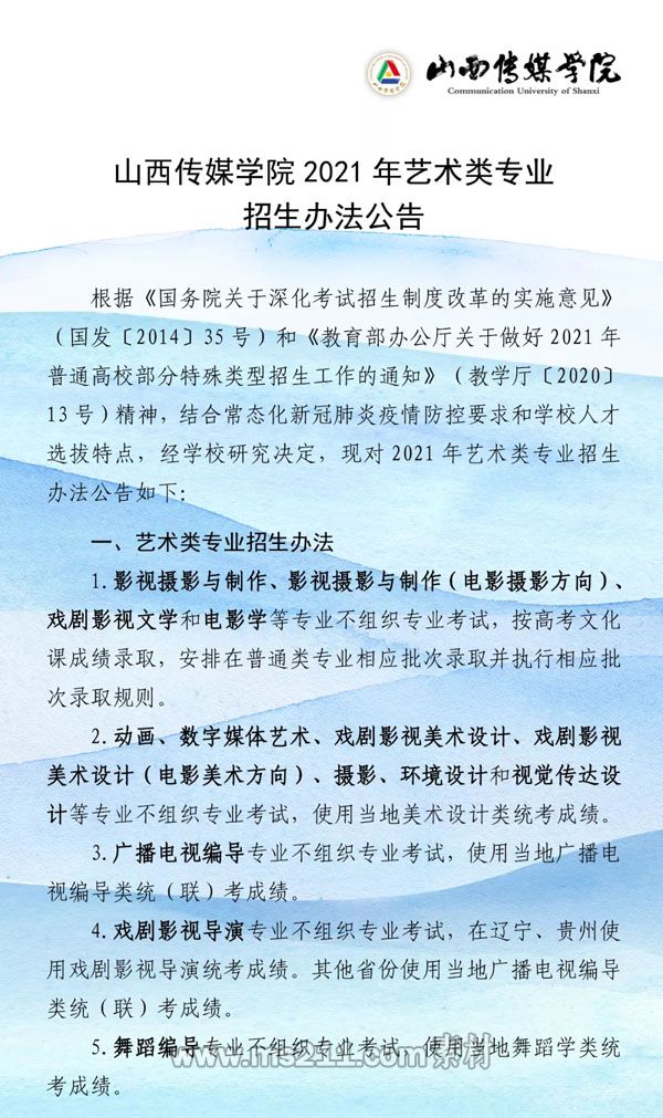 上一篇: 2021年山西傳媒學院藝術類專業(yè)招生辦法公告 下一篇:最后一頁