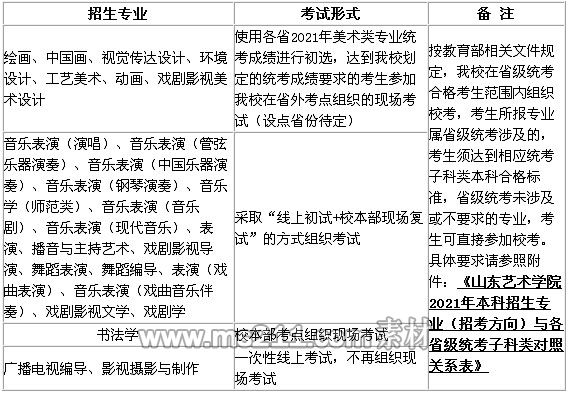 附件:《山東藝術學院2021年本科招生專業(yè)(招考方向)與各省級統(tǒng)考子科類對照關系表》