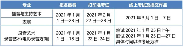 播音與主持藝術(shù)專業(yè)和表演專業(yè)采取“全程監(jiān)控、現(xiàn)場(chǎng)錄制、提交作品、考評(píng)分離”的線上考試方式,即現(xiàn)場(chǎng)錄制本人作品并提交,考后由學(xué)校組織專家進(jìn)行集中評(píng)分。考試為一試,不設(shè)初復(fù)試。