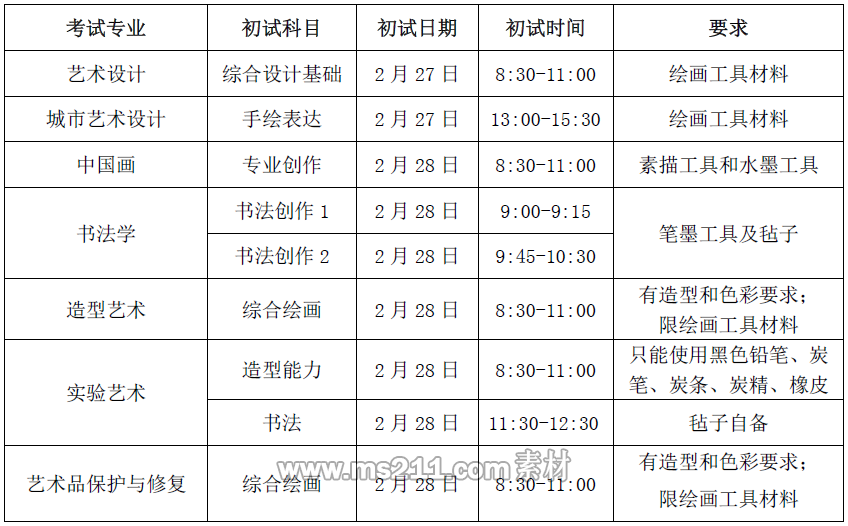 ★所有專業(yè)考試均應(yīng)使用學(xué)校提供的考試用紙規(guī)范答卷,不得使用油畫顏料。