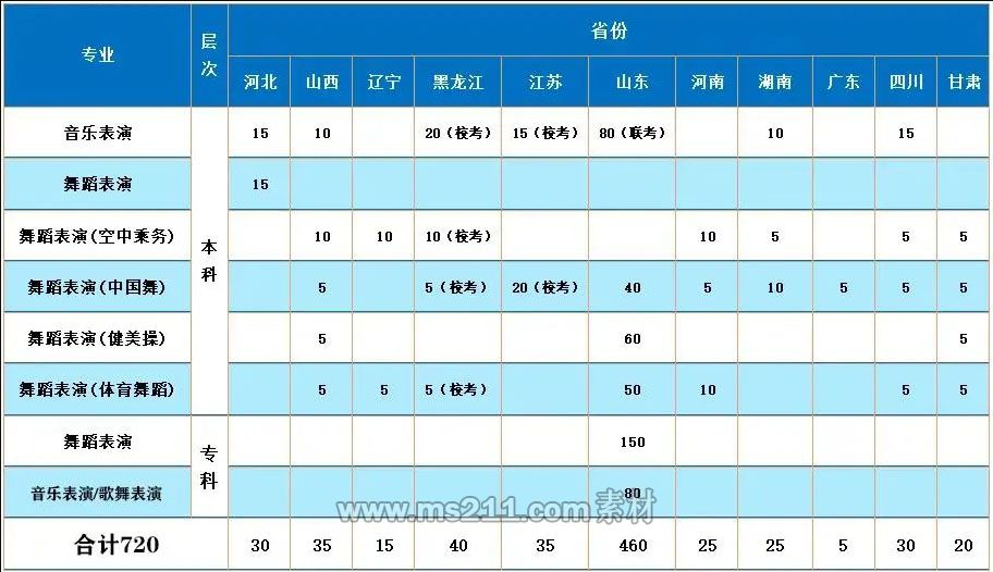 5、音樂舞蹈類專科專業(yè)認同所有本科高校相同或相近本科專業(yè)合格成績。高考錄取時按文化課成績從高分往低分錄取。