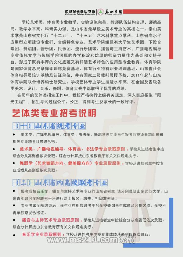 上一篇: 2021年泰山學(xué)院藝術(shù)體育類專業(yè)招生簡章 下一篇:最后一頁
