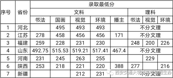 5.江蘇省:美術(shù)類專業(yè)見江蘇省教育考試院關(guān)于藝術(shù)類考生報(bào)名的通知。書法學(xué)和播音與主持藝術(shù)專業(yè)實(shí)行校考,報(bào)名時(shí)間及方式見學(xué)院招生信息網(wǎng),或關(guān)注“西安交通大學(xué)城市學(xué)院招生辦”微信公眾號(hào)。