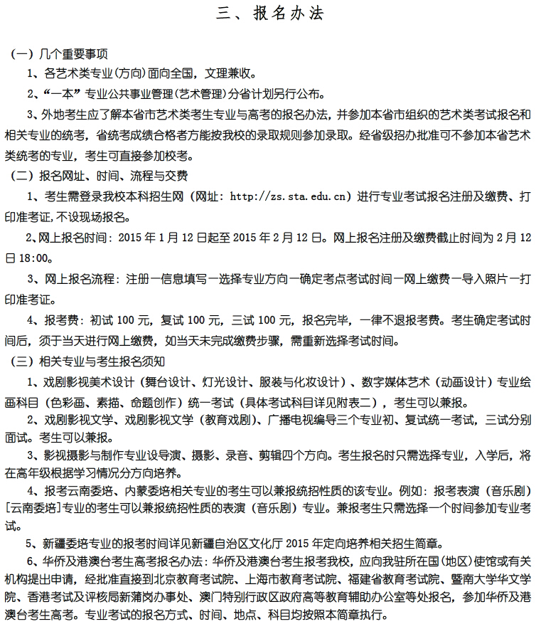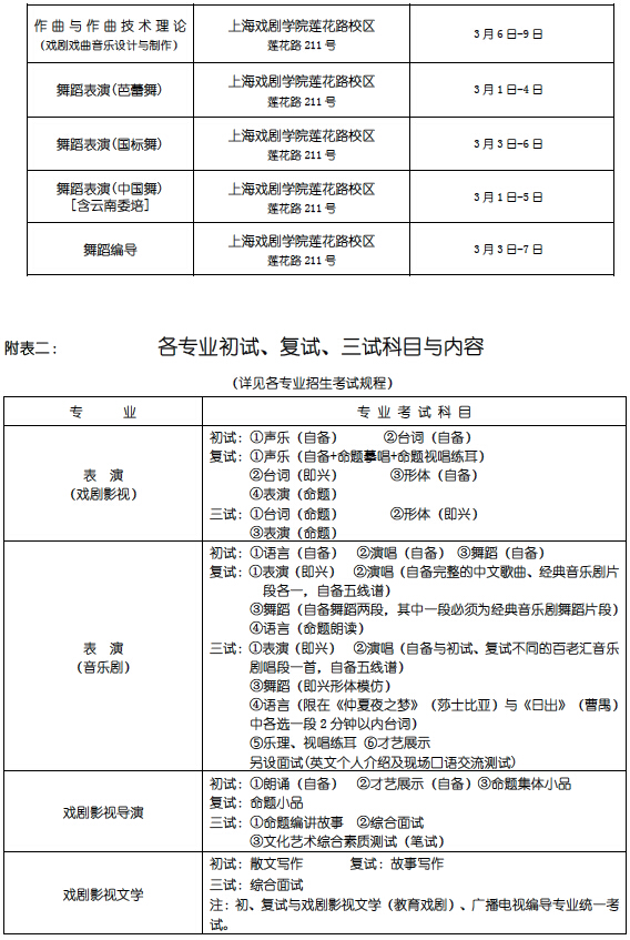 上海戲劇學(xué)院2015年藝術(shù)類專業(yè)??紩r(shí)間及考點(diǎn)安排