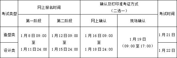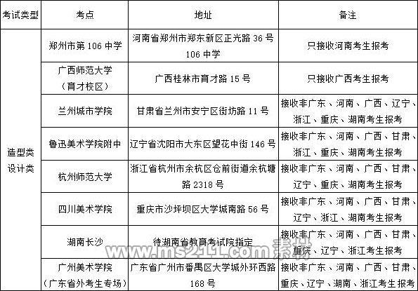 注:①因各考點容量有限,我校分兩階段進行網(wǎng)上報名:第一階段,每個考生僅可選擇“造型類”或“設計類”其中之一進行報名;第二階段,如考點容量未滿,考生即可兼報另一種類別。