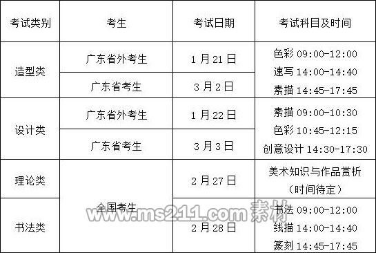 “書法類”、“理論類”及面向廣東省考生設置的“造型類”和“設計類”報考安排,以我校2019年普通本科招生簡章公布為準。