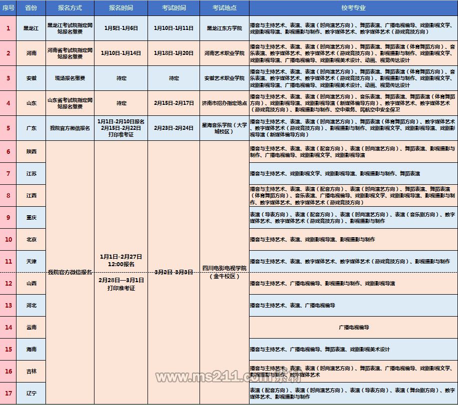 四川電影電視學(xué)院2019年省外??夹畔⒁挥[表