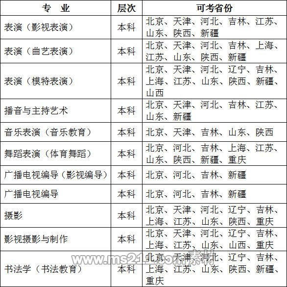 2、非美術類專業(yè)(方向)屬省統(tǒng)考范圍內的,按照省有關招生規(guī)定執(zhí)行,使用省統(tǒng)考成績(具體規(guī)定請考生向所在省招辦咨詢);不屬于省統(tǒng)考范圍的專業(yè)(方向)須參加我校組織的校考。個別省份須在省統(tǒng)考合格基礎上,參加我校組織的???。