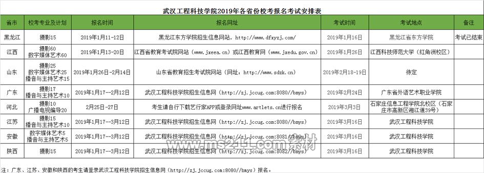 武漢工程科技學(xué)院2019年藝術(shù)類(lèi)專(zhuān)業(yè)??紩r(shí)間安排表