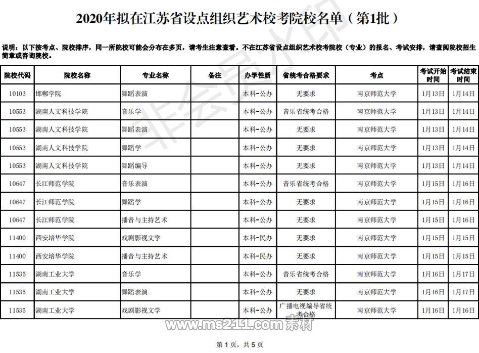 點(diǎn)擊查看pdf版:2020年擬在江蘇省設(shè)點(diǎn)組織藝術(shù)??荚盒C麊危ǖ?批)