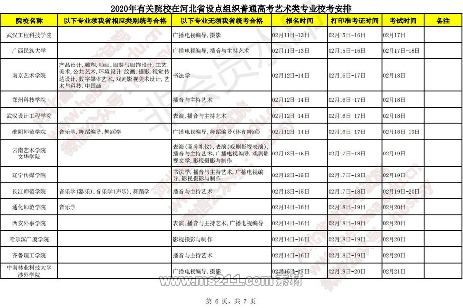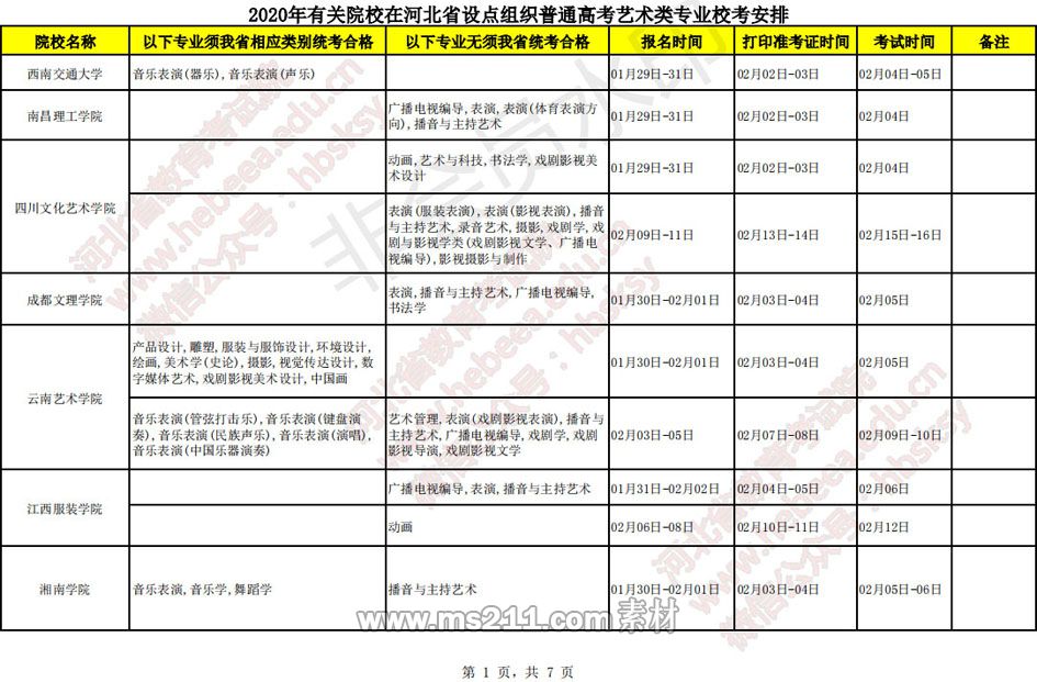 點擊查看附件:2020年有關(guān)院校在河北省設(shè)點組織普通高考藝術(shù)類專業(yè)??及才?/strong>