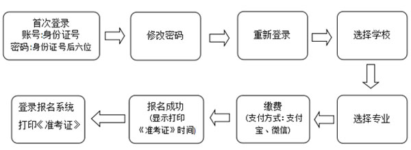 ?。?)網(wǎng)上報名(繳費)、打印《準(zhǔn)考證》示意圖